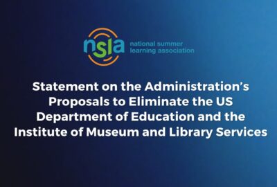 NSLA is deeply concerned by the Administration’s proposals to eliminate the U.S. Department of Education and the Institute of Museum and Library Services (IMLS) and to reduce funding support for Summer Meals programs within the US Department of Agriculture. Read our statement here.